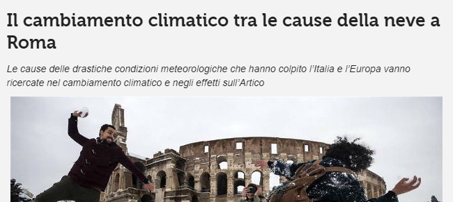 In Italia si pensa che la neve a Roma è sempre colpa del riscaldamento globale…