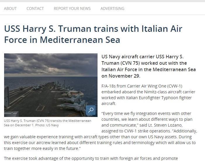 Mi giungono per altro notizie di piani, dopo le esercitazioni congiunte con la marina italiana di dicembre 2018, per spostare uno strike group USA nel mar ligure appena prima delle elezioni EUropee dei prossimi mesi (infatti la USS Truman è già oggi nel Mediterraneo, di fatto prossima ai confini con l’Italia, nei pressi di Tolone, capito mi hai…); guarda caso la stessa cosa che successe quando Salvini andò in Libya all’inizio del mandato gialloverde, protetto dall’Air Force USA oltre che dall’Aeronautica, un modo come un altro per disinnescare sul nascere tentavi di zittire governanti stranieri scomodi, Parigi è molto esperta in tali faccende soprattutto in Africa (mentre la portaerei americana USA Truman faceva tappa nel mare di Marsiglia, facendosi ben vedere a tutti con manifestazioni semi-pubbliche a bordo).