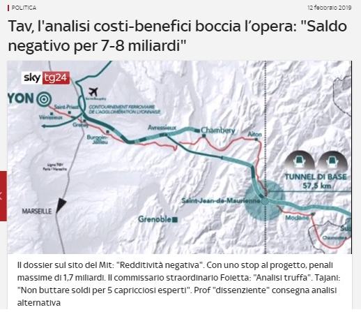 Per altro non mi aspetto rimostranze lato leghista, anche perchè leggevo del commissario ai lavori governativo della TAV che, stizzito per lo stop, si è appellato non alla correttezza dei costi ma alla mancata considerazione di aspetti “sociali ed ambientali” nelle valutazioni (per le condizioni in cui si trovano le finanze italiane sembrerebbe trattarsi di fuffa, che ne dite?). Forse non tutti lo hanno capito ma l’Italia è IN BOLLETTA per cui prima di tutto bisogna puntare ai risparmi; ci sono genitori che devono ritardare trattamenti sanitari per l’assenza di cash, dunque che lo stato eviti di buttare via soldi!