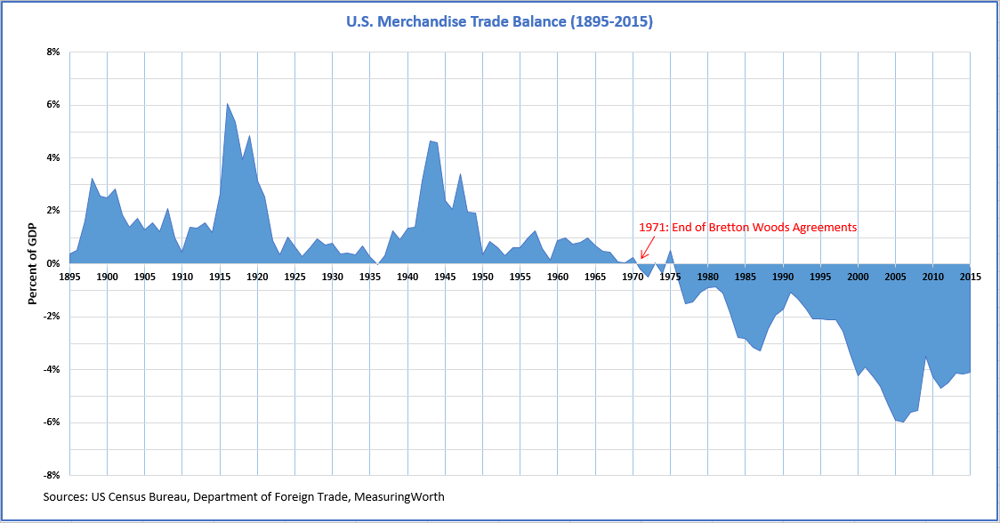 Gli USA ruppero il sistema di Bretton Woods quando andarono strutturalmente in deficit commerciale, con Nixon, ossia quando gli effetti della ricostruzione post WWII erano terminati (…). Da lì iniziò la politica del petroldollaro, ossia la necessità di inondare il mercato mondiale di dollari necessari per pagare il petrolio (di cui tutto il mondo necessita) quotato sui mercati strettamente in moneta americana. L’esportazione di valuta USA avvenne durante anni, fino all’accumulo enorme dei deficit commerciali americani che si sono man mano tradotti in debito nazionale prettamente cartaceo, più o meno post accordo del Plaza. Da lì in avanti gli USA usarono bellamente il verdone come merce di scambio per preziose merci fisiche, chiamasi privilegio di avere la valuta di riferimento globale.