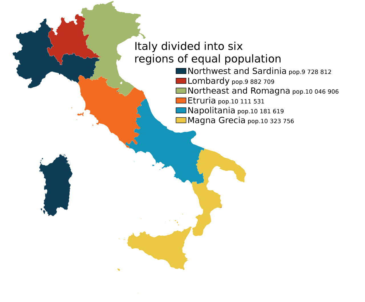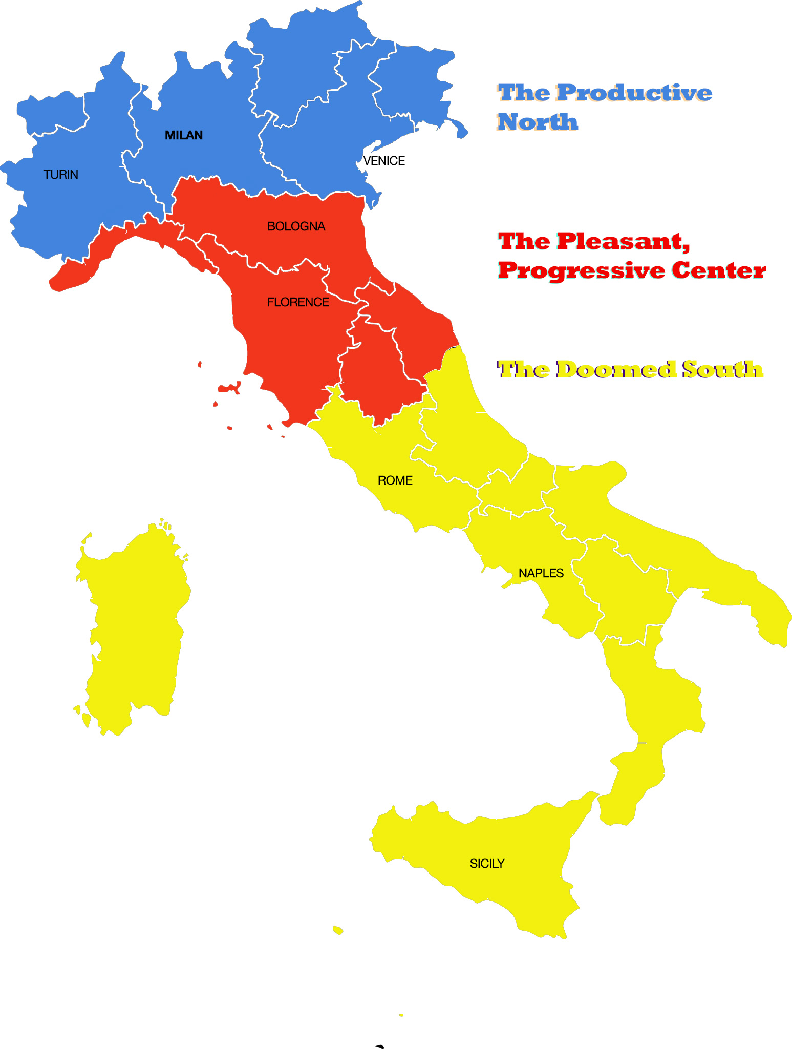 Una suddivisione “statistica” (ma guarda un po’ quante analisi hanno fatto gli stranieri “a nostra insaputa” su come dividere l’Italia…)