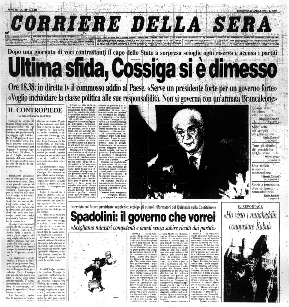 In troppi dimenticano che per fare “partire” Tangentopoli fu necessario sloggiare Cossiga dal Quirinale, che aveva già bloccato con minacce manu militari il CSM alcuni anni prima (…): alla fine Cossiga si dimise con tre mesi d’anticipo da Presidente della Repubblica dopo ben due tentativi di messa in Stato d’accusa (questo dimostra che Tangentopoli fu una sorta di golpe?)