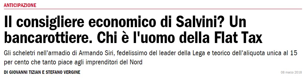 Ora però devo farvi una domanda: che credibilità può avere Armando Siri in tale contesto? Perchè è stato attaccato – proprio lui – con motivazioni che sembrano assolutamente deboli? Ricordo la sua famosa proposta di BTP riservati senza investimenti massicci a supporto, tecnicamente una baggianata talmente enorme – difesa solo da Rinaldi, poi casualmente candidato per la Lega, ndr – che ritengo solo un o sprovveduto poteva tirare fuori.