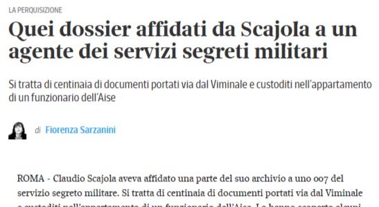 Lo Scajola finì anche in un successivo misterioso scandalo per cui gli vennero sequestrati a casa propria dossier scottanti – si riteneva indebitamente detenuti – provenienti dai servizi segreti militari. Dossier che il Corriere della Sera si spinse a definire come “dossier segreti contro i rivali politici” (quasi fossero una polizza di assicurazione insomma). La cosa interessante sta però nella firma del pezzo del Corriere della Sera: lo stesso soggetto che firmò numerosi articoli su Scajola ed i suoi dossier segreti detentuti in casa – Fiorenza Sarzanini – è lo stesso molto ben informato sull’affaire Siri, fu infatti la Sarzanini per prima a scoperchiare il pentolone con le intercettazioni di Arata che inchiodano Siri (…). Penso non sia necessario aggiungere altro.