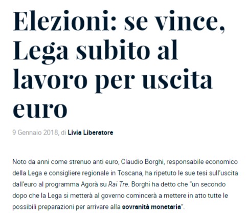 Resto convinto che l’uscita dalla moneta unica sia l’unico rimedio alla schiavitù, per l’Italia.