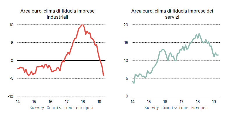 Il motivo è il rallentamento delle maggiori economie, dopo 11 anni di crescita ininterrotta, dal 2008. Va infatti ricordato come mediamente da inizio 1900 la durata media tra due grosse crisi finanziare è di 11 anni, dunque casca quest’anno (secondo fattore). Da ciò deriva anche la debolezza di alcuni soft data, fiducia e servizi (terzo fattore).