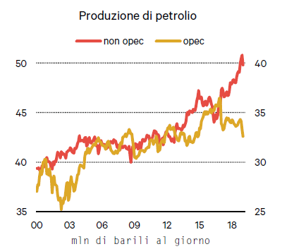 Il quinto ed ultimo fattore sta nel seeding inflattivo – nell’interesse USA, che ha un debito pari ad oltre il 100% del PIL, parlo di un PIL smisurato, il primo del mondo – derivante dal petrolio espresso in euro: si noti che che la crescita globale di produzione di petrolio deriva dalla crescita di offerta USA, che durerà al massimo fino al 2022-23. Ossia, per evitare di essere colpiti da una scarsità petrolifera globale gli USA devono innescare inflazione all’estero ora (…).