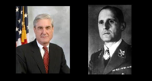 Il motivo della destabilizzazione interna USA è data dal ruolo di basista della Germania, potentissima a livello di intelligence, dopo aver fuso i suoi servizi segreti con la cinica Stasi della DDR (con W. Schauble agli Interni), potendo dunque leveraggiare l’infrastruttura della RFT fondata sul sistema postbellico Gehlen, il generale ex nazista convertito alla NATO, molto probabilmente coordinato proprio da quel Mueller che fu capo della Gestapo e che sparì pochi giorni prima della fine della guerra. In molti sostengono che in realtà il gerarca abbia riparato in Virginia o in Maryland per aiutare a costruire la CIA e l’FBI moderni. Non sarebbe dunque un caso che per tentare di bloccare Trump sia stato nominato come Grand Jury dai Dem (filo EU) un altro Müller, Robert, ex capo dell’FBI, avente somiglianze fisiche addirittura imbarazzanti con il fu capo della Gestapo hitleriana.