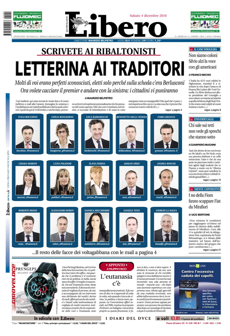 I “traditori” visti da destra (quelli visti da sinistra li evincete dal titolo, …); che poi siano tutti anche in predicato di riunirsi in un’unica federazione di voltagabbana super-partes come con Renzusconi sembra quasi la normalità…