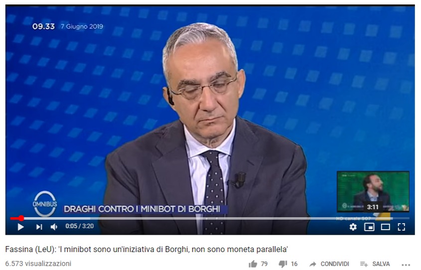 In ultimo, che si sappia: chi scrive considera i miniBOT per come li ha pensati la Lega una emerita fesseria. Anzi, uno strumento per il caos. Va stigmatizzato per altro come lo stesso Bagnai alla domanda di un intervistatore, abbia risposto che i miniBOT NON sono un suo progetto suo ma di Borghi, ovvero – dico io – di un soggetto che per fortuna non insegna ai vostri figli economia, credetemi. Per altro anche Fassina ha fatto lo stesso, piano piano tutti stanno dando la colpa a Borghi, (per la cagata pazzesca…?) [speriamo di non scoprire in futuro che qualche leghista è stato coinvolto nella creazione di piattaforme di scambio privato di miniBOT, a valore inferiore al nominale, cosa che nessuno vi dice ma che è tecnicamente INEVITABILE!]