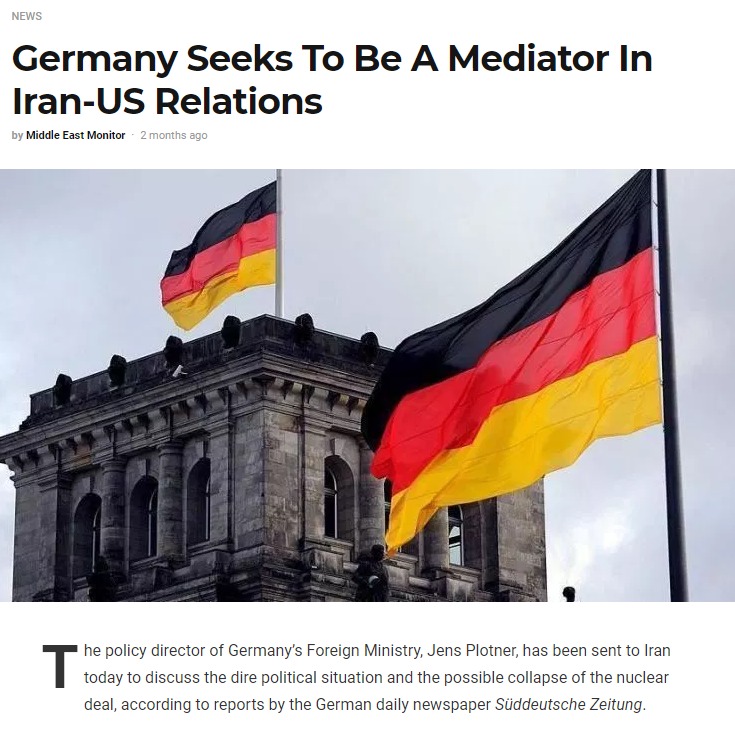Va per altro notato, ben chiarito dal Gatestone Institute, come l’amicizia tra Iran e Germania vada indietro almeno 100 anni, essendo stati per altro gli iraniani addirittura considerati “fratelli di sangue” da Hitler ossia come popolo ariano. Passando per la fuga in aree protette dagli sciiti di criminali nazisti dopo la WWII, dunque mai arrestati (Alois Brunner su tutti); unitamente alla considerazione che MAI l’Iran ha criminalizzato la Germania per le sue nefandezze hitleriane, unico paese al mondo. E concludendo con l’aiuto del potentissimo e raffinatissimo economista e ministro nazista H. Schacht al presidente iraniano Mossadeq, aiuto tanto prezioso e fruttuoso da obbligare gli USA e gli UK al primo vero golpe contro un paese esterno per insediare lo Scià, a cui guarda caso fu concessa una centrale atomica (probabilmente se non ci fosse stato il regime di Khomeini di mezzo, la regia delle operazioni in medio oriente per mano americana sarebbe stata di Teheran, con le forze fedeli allo Scià, ndr).
