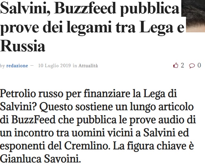 Oggi è difficile scorgere – per ora – quale sia stato il vero driver dello scandalo pilotato di Buzzfeed pubblicato addirittura come audio (tradotto, molto probabilmente c’è anche dell’altro, vedrete che tutto sarà silenziato proprio per questo). Dovrete fare attenzione alle “grandi svolte” dei prossimi giorni, soprattutto lato Salvini, che molti dicono stesse per mollare il M5S. Infatti tale dossier Buzzfeed sembra fatto apposta per evitare un qualcosa, magari una qualche svolta che stava per accadere.
