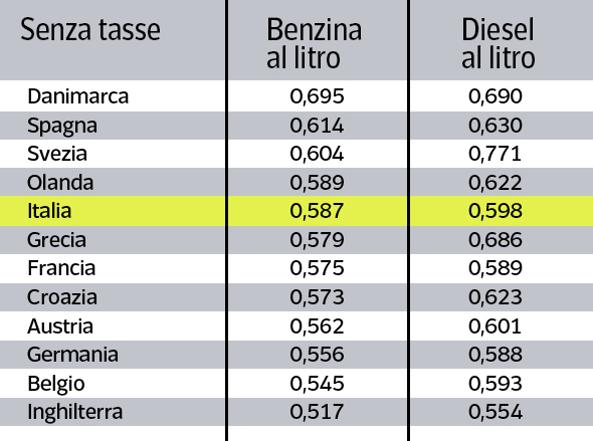 COSTO DELLA BENZINA AUTO SENZA TASSE, Italia coi i costi tra i più bassi!