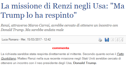 Attenzione, qui non stiamo parlando – nel caso delle influenze anti-Trump avvenute durante il governo renziano – di supposizioni, ma di qualcosa di più, ossia di atti parlamentari USA al vaglio degli organi competenti, non essendo state le notizie di stampa correlate per altro smentite da chicchessia. Rischiamo infatti che non ci sia stato un Russiagate ma invece un Italiagate, contro Trump. Meglio detta, e qui torniamo al titolo, nel caso sarebbe un Renzigate; vedremo come si svilupperanno le indagini ma temo ci sarà da ballare per qualcuno. Da bravi osservatori, appunto, osserveremo. E nel caso riporteremo.