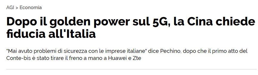 Va notato che invece i leghisti ai tempi sostenevano che la colpa della mancata approvazione del decreto anti-Cina – come della eccessiva amicizia con la Cina – DIPENDESSE dai 5Stelle. Movimento che invece – ripeto – ha detto sì senza remore al primo provvedimento di Conte contro Pechino. Alcuni sono arrivati anche ad mettere in giro la storiella che Geraci fosse in quota M5S e non in quota Lega, mah…