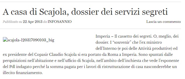 I fatti dell’epoca ci dicono che a breve giro Scajola, certamente in modo casuale, fu “bruciato” dallo scandalo della casa vista Colosseo comprata a sua insaputa, reato a cui comunque seguì la prescrizione, va detto [ma dopo molti anni, ndr]. Oggi l’ex ministro è sparito dalla politica, complici – tra gli altri – strani casi di dossier sottratti al Ministero e rinvenuti a casa sua, fatti di cronaca di cui la stampa parlò solo molto superficialmente (vedasi LINK e LINK).