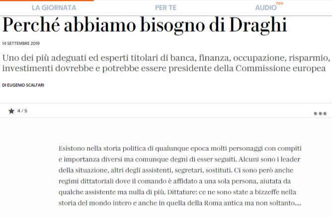 A partire da oggi dobbiamo iniziare a capire che le cose in Italia dovranno necessariamente cambiare, non si potranno più tenere i piedi in due scarpe. Anche perchè di scarpa l’Italia ne ha solo una, quella americana, scarpa n. 110. A guardare infatti, l’ex ministro leghista, a parte aver fatto una marea di promesse rinnegandone la maggior parte, alla fine ha aumentato le tasse agli italiani ed era anche pronto ad andare a letto anche con l’EU se gli avessero concesso un commissario di peso, altro che cambiare l’EU. Alla fine dei giochi, tragicamente, il risultato è stato che sia il commissario EU all’economia (senza deleghe, una vera persa in giro al Paese Italia, semplicemente pagare uno stipendio ad un politico “affidabile” e cooptato dall’EUropa senza dargli credito ovvero senza dargli l’autorizzazione di decidere alcunchè a vantaggio del proprio Paese, ndr) che il presidente del Parlamento EU appartengono alla sinistra italiana, un finale disastroso.