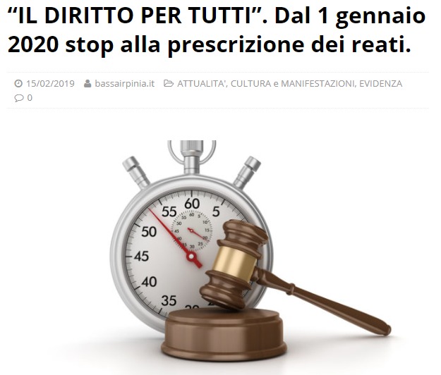 Aggiungiamo a questo una chicca, ossia la cancellazione della prescrizione dal 1.1.2020: da tale data i reati commessi a partire dal 2019 NON si prescriveranno più in presenza di una sentenza sia di condanna CHE DI ASSOLUZIONE in primo grado. Avete capito bene, non ci sarà più prescrizione nemmeno in tale caso, che voi siate stati assolti (sembrerebbe un esempio da manuale per un supposto fascismo là da venire, che dite?). Visto che la stragrande maggioranza delle prescrizioni avviene dopo il primo grado questo significherà che dal 1.1.2020 i reati potranno essere perseguiti in eterno. E questo da parte di un paese che viene sistematicamente richiamato – e multato – dalle istituzioni internazionali per i processi infiniti: dal prossimo anno la legge permetterà di tenere sulla graticola una persona anche assolta in primo grado PER SEMPRE, con lo spauracchio del processo infinito!