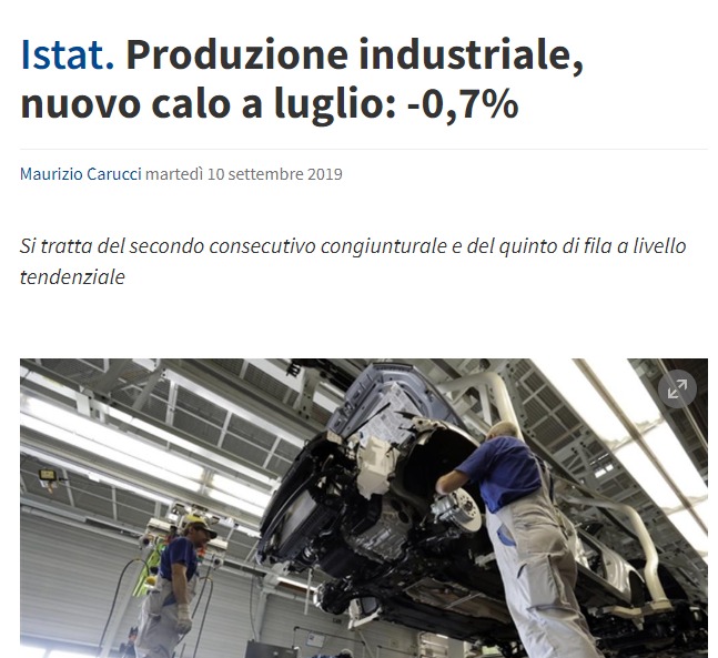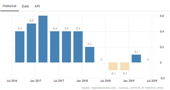 Stagnazione del PIL per l’Italia. Che in presenza di una salita del petrolio [ad es. causa Iran] si trasformerà in stagflazione, il peggiore dei mali per chi è inchiodato in una moneta straniera (ossia—> PATRIMONIALONA LA’ DA VENIRE! – restando nell’euro…. -)
