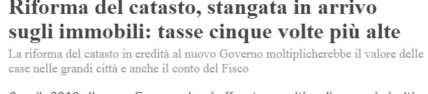 Mentre la riforma del catasto prenderà almeno un anno, ossia sarà applicata a partire dal 2021 – e sarà un salasso -, il taglio delle detrazioni/rimborsi/agevolazioni, ossia anche quelle sulla ristrutturazione casa, sarà immediato. Ossia, sarà una emerita fregatura. Il motivo è presto detto: così si colpisce “in fronte” la classe media, quella che ancora può spendere, per altro rinnegando il principio del legittimo affidamento, ossia chi ha fatto le ristrutturazioni sulla casa lo ha deciso a fronte del rimborso che sarebbe arrivato in futuro. Oggi questo rimborso, in molti casi, non arriverà (mai fidarsi dello Stato Italiano!). Dunque il prossimo anno aspettatevi consumi ancora più bassi ed inflazione giù (fatta salva una guerra per il petrolio, possibile; in tale caso sarà stagflazione, il che significherà esplicita dittatura fiscale, segnatevelo, …).