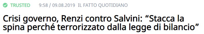 Forse aveva ragione Renzi, forse Salvini stava solo cercando la scusa buona per non fare la manovra di bilancio “suicida” (obbligata, restando nell’euro); infatti oggi è piuttosto silente sul suicidio insito nelle misure adottate dai giallorossi…