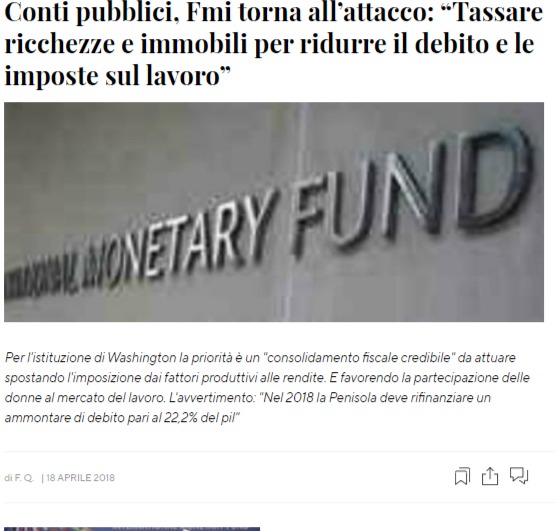 La prima è una esplicita richiesta dell’EU (addirittura Mme Lagarde, ora alla BCE, lo chiedeva con veemenza quando era all’FMI, “più tasse sul patrimonio“); la seconda più infima in quanto non alza la pressione fiscale ma ha LO STESSO EFFETTO in quanto riduce i trasferimenti alle famiglie.
