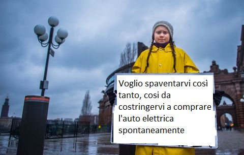 L’errore più marchiano della propaganda di Greta è proprio quella di confondere il breve termine con il lungo termine, in fatto di effetti climatici. Oltre a non poter nascondere l’enormità delle balle raccontate, tanto immense da rendere impossibile crederci. Basta ricordare che la Groenlandia è chiamata così perchè era gruene, ossia verde, nel medioevo, alberata e boschiva. Oggi è bianca e gelata. Ossia cambiamenti climatici ci sono sempre stati ed il mondo è sopravvissuto, da sempre. Chiaramente lo scopo attuale della propaganda di Greta è un altro, ossia farci consumare prodotti che con l’ambiente non c’entrano nulla, ma con il potere ed il denaro tantissimo…