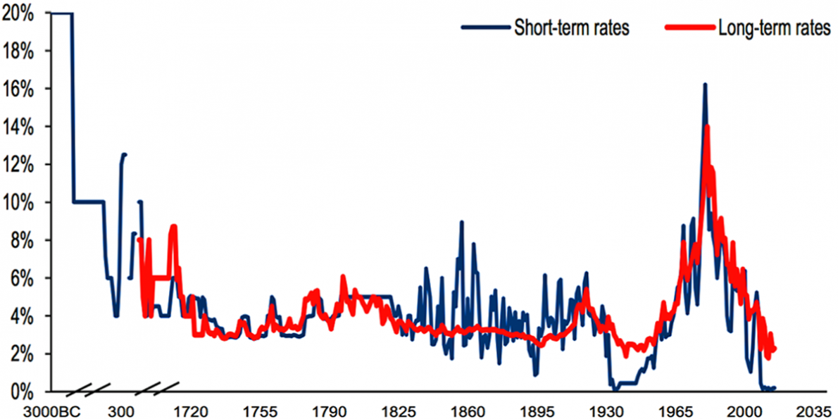 Il motivo della voglia di investimenti verdi? Che il capitale non è mai costato così poco negli ultimi 5000 anni!