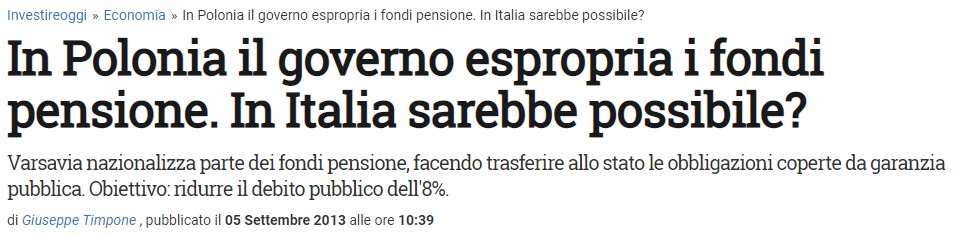 Inizialmente si passerà per il salvataggio del primo pilastro sistemico che inevitabilmente crollerà, l’INPS. Ovvero, per vostra info, i conti dell’INPS salteranno bellamente, visto che base meccanismo a ripartizione su cui è fondato l’Ente, tutto funziona se c’è piena occupazione con stipendi non in netta discesa.