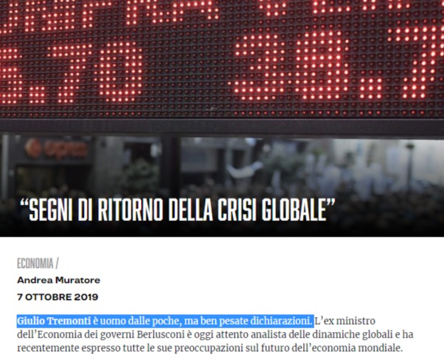 Avanti così, come sapete propendiamo per una sostituzione di Salvini e dei salviniani, a questo punto falsi sovranisti, dai posti chiave in Lega; sostituendoli con un dream team composto da un uomo di riferimento del partito, Giorgetti (filo USA, sapendo cosa gli costerebbe non allinearsi, al contrario dallo scellerato Salvini) e poi un team composto da Giulio Tremonti futuro premier e il prof. G.iulio Sapelli, futuro ministro degli Esteri o dei Rapporti con l’EU. Ben sapendo che se succederà, speriamo, il Mattarella da Castellamare del Golfo non oserà opporsi.