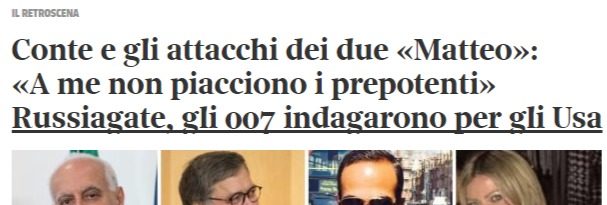 Nello scalpore generale dicemmo in tempi non sospetti che Trump con il suo tweet di fine agosto aveva impedito il renzusconi. Pochi ci credettero. Ora la realtà si sta componendo, con il fronte dei “due Matteo” sempre più uniti nell’intento di abbattere il primo ministro sospetto massone, Conte, supportato dagli USA di Trump, via servizi segreti nazionali. Alla fine, vedendo i fatti ossia le azioni, è chiaro che ci sia una collaborazione vera tra Matteo Salvini e Matteo Renzi contro Trump, ossia contro Conte, con il PD supino (tanto per far capire come gira il mondo, ancora non si è smesso di parlare di infiltrazioni di servizi segreti esteri in Italia via collaborazioni di spioni che i server del PD sono stati infettati da qualche starno virus e “bucati” da Anonymous, che caso….).