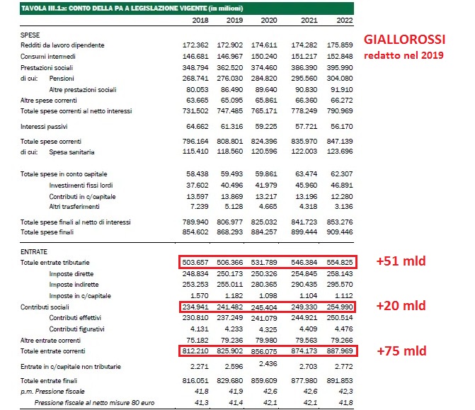 A fronte di questo abbiamo già dimostrato come tra il NA-DEF gialloverde l’anno scorso e giallorosso quest’anno non c’è alcuna differenza, assolutamente: tasse erano e tasse rimangono. Inutile aggiungere altro.