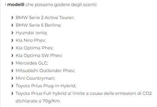 Auto elettriche ed ibride incentivate dal governo Lega + M5S l’anno scorso (2018, a decorrere dal 2019): non c’è un’auto italiana….