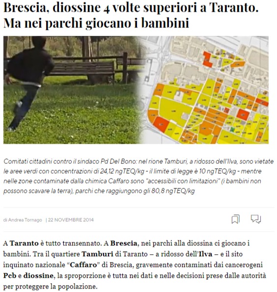 Taranto è inquinata causa Ilva, innegabile. Ma è davvero la provincia più inquinata d’Italia? A Brescia ci sono state recentemente concentrazioni di diossina anche 1000 volte superiori di Taranto! Ma nessuno dice nulla (“…deindustrializziamo la pianura padana!!!!”)