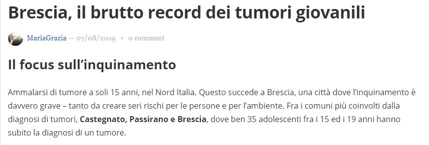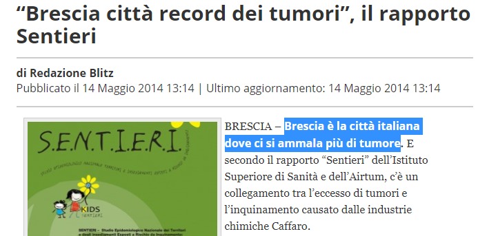 Chissà allora a Brescia cosa bisognerebbe fare, bisognerebbe deindustrializzarla per tagliare l’inquonamento? Anche perchè sembra che l’inquinamento bresciano non derivi solo dalla Caffaro – che è vicina al centro della Città – purtroppo…
