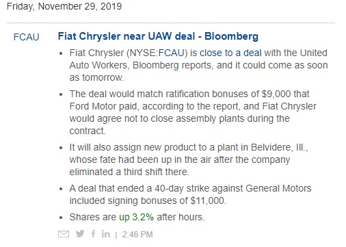 Venerdì scorso una notizia a mercati chiusi ha scosso il mercato: FCA, ossia il Gruppo Fiat Chrysler comprato recentemente dai francesi, sembra sia vicino ad un accordo con i sindacati auto americani per NON chiudere stabilimenti in USA e pagare bonus assimilabili a quelli pagati da Ford, ossia ca. 9’000 dollari a dipendente! Considerando che netto su netto molti operai Fiat in Italia prendono di stipendio qualcosa di simile a quanto in USA viene dato come bonus, viene da chiedersi quale cataclisma socio-economico si sta preparando per l’Italia. Infatti spendendo in USA bisognerà chiudere ovvero risparmiare – leggasi chiudere stabilimenti – altrove. Ossia in Italia…