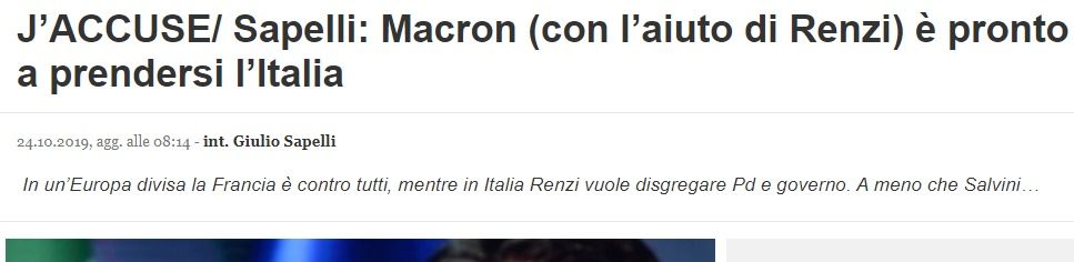 Quello che mi domando è come mai nessuno chieda conto a Matteo Salvini, sempre più prospetticamente a letto con Renzi, perchè sia costantemente a favore della Francia nelle sue decisioni economico-politiche, ossia non boicotti mai la politica imperialista di Parigi in Italia….