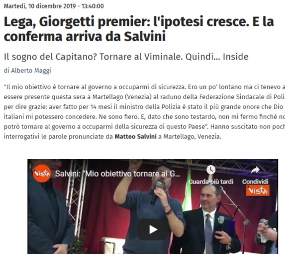 Ora, o Salvini si fa di lato nella Lega e nel futuro governo, diventando solo ministro degli Interni e lasciando la direzione del partito, o temo verrà spostato, causa forza maggiore. Spero ci crediate, noi lo diciamo da tempo.