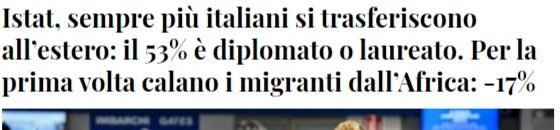 Nel mezzo di tutto questo grande caos c’è il Paese che va a rotoli, da dove – lo hanno riportato i media italiani negli scorsi giorni – emigrano le menti italiane migliori mentre nemmeno i migranti vogliono più arrivare. Un paese in decadenza, stretto dalle enormi promesse dello Stato ai propri cittadini (si chiamano pensioni) ma senza persone ed aziende per sostentare tali promesse future. Ossia un paese prossimo al default tecnico, che dovrà scegliere se attuare una sorta di fascismo fiscale per rimanere nell’euro o un fascismo reazionario per uscirne, visto che con le buone non sembra possibile scappare dal cul de sac della moneta unica questa volta …..