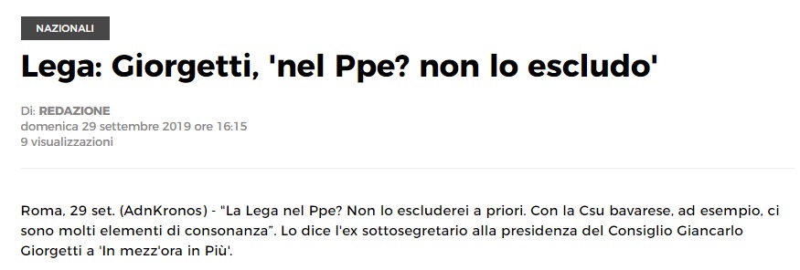 Sta di fatto che, per tutto quanto sopra, tenendo conto delle pulsioni per ora represse a forza di tweet americani verso il renzusconi, chi scrive non si fida assolutamente della Lega Salviniana, preferendo una Lega de-salvinizzata. E, notate bene, con lo stesso scopo di cui al titolo, ossia di tornare nel solco del ritorno alla propria valuta nazionale osteggiando i partiti globalisti pro-EU, in difesa del proprio perimetro nazionale sia sociale, che geografico che economico in mera coordinazione con quello dell’euro, come era il caso con il cd. serpente monetario (…). Ben conscio che la Lega ed i maggior stakeholders leghisti NON vogliono abbandonare l’euro, ovvero preferiscono far patire le pene dell’inferno ai propri concittadini – leggasi tasse da fascismo fiscale – pur di non pagare di tasca propria intaccando i patrimoni delle elites italiane, soprattutto del nord.