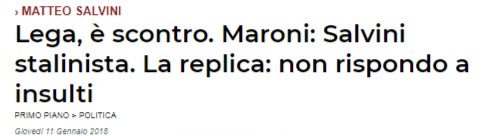 Questo rischia di essere non solo un vulnus, ma anche di trasformarsi in un rischio democratico per il Paese se dovesse continuare la contrapposizione anche violenta con chi la pensa diversamente, anche tra le fila leghiste. E magari contro chi è capace di spiegare le proprie tesi in modo compiuto e non urlando o insultando, al contrario dei salviniani a corto di contenuti.