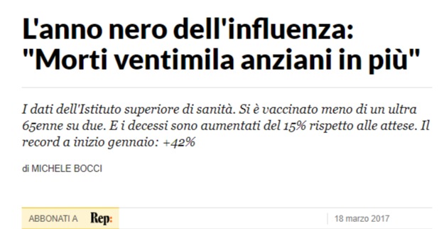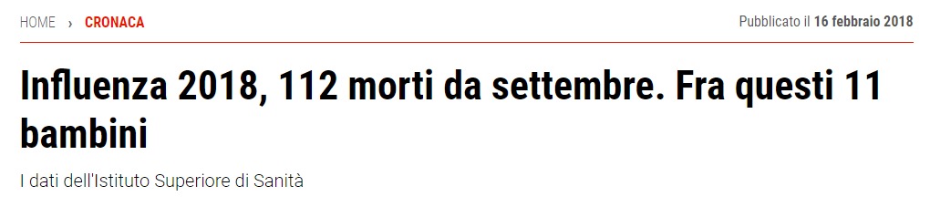 Poi, di influenza di morti ce ne sono annualmente molti di più che per coronavirus, solo che non viene detto, anzi dati dell’influenza sembra spariti quest’anno. Non ci credete? Al di fuori di quanto nel titolo, ecco una carrellata di esempi: