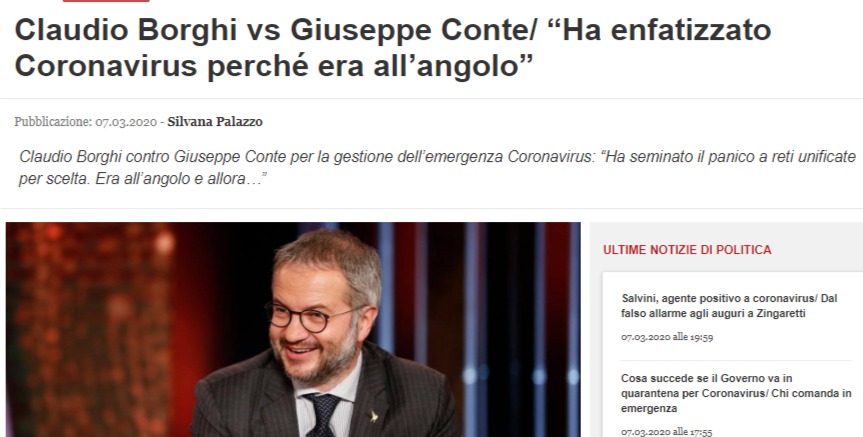 Ed ora parliamo del virus scatenatosi nei pressi di Lodi, per dubbie inefficienze lombarde, la cui sanità – lombarda – risponde(va) prima tutto al governatore leghista Fontana, quello che incredibilmente si mise la mascherina in diretta, aggiungendo panico al panico.