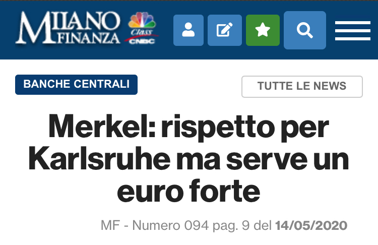 Del resto lo dice chiaramente la Cancelliera tedesca Angela Merkel, in barba alla sua corte costituzionale: