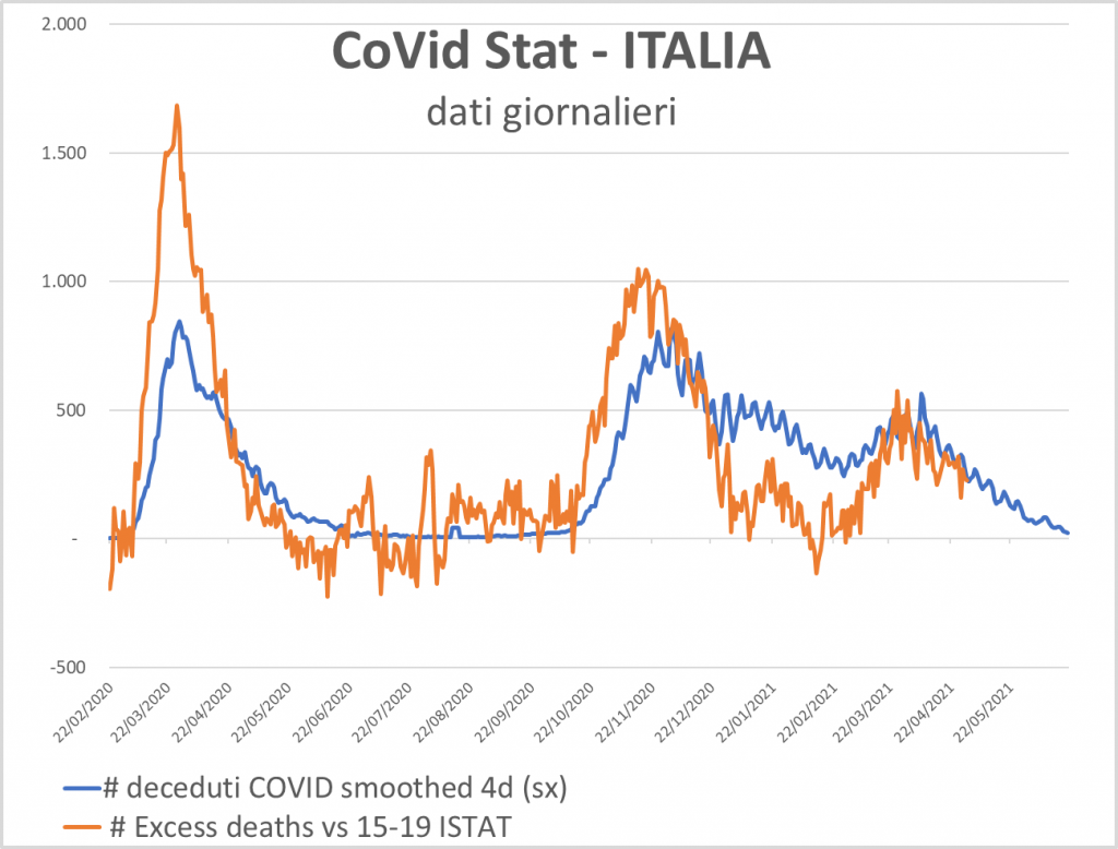 E l’andamento Italiano dei decessi (dichiarati) Covid è assolutamente speculare a quello dell’anno passato (in assenza di vaccini disponibili)
