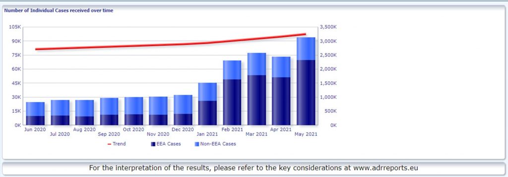 Più in generala, in Europa, con l’avvento dei vaccini COVID, la numerica di reazione avverse a farmaci e vaccini è balzata da 20.000/mese a oltre 90.000/mese con una incidenza delle reazioni avverse segnalate come “significant” di circa il 30%.