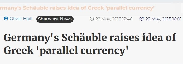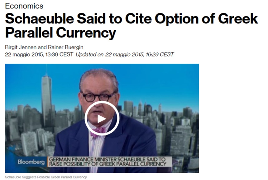 Il vero problema sta nel fatto che tutti tacciano un aspetto importantissimo sui miracolosi miniBOT, ossia tacendo proprio l’aspetto in grado di mettere in evidenza la bugia di chi i miniBOT invece li propone: detto strumento rappresenta una valuta parallela e fiscale che è stata ESPRESSAMENTE proposta dall’EU nel 2015 come modo per impedire l’uscita dall’euro di Atene. E, udite udite, tale moneta parallela fu proposta proprio dal falco tedesco Schauble come modo per tenere legata la Grecia all’euro impedendole di convertire il debito estero in valuta locale, NON PER FARLA USCIRE DALL’EURO.
