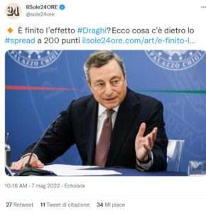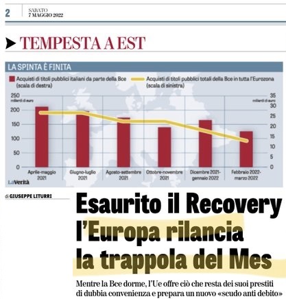 Chiaro, si finirà – appunto entro fine 2023 – in balia dell’EU/BCE che ad un certo punto dovranno sacrificare l’Italia facendo decollare i tassi se l’inflazione – come è ormai chiaro a tutti – resterà alta per volere esterno, con l’aggiunta di una guerra.
