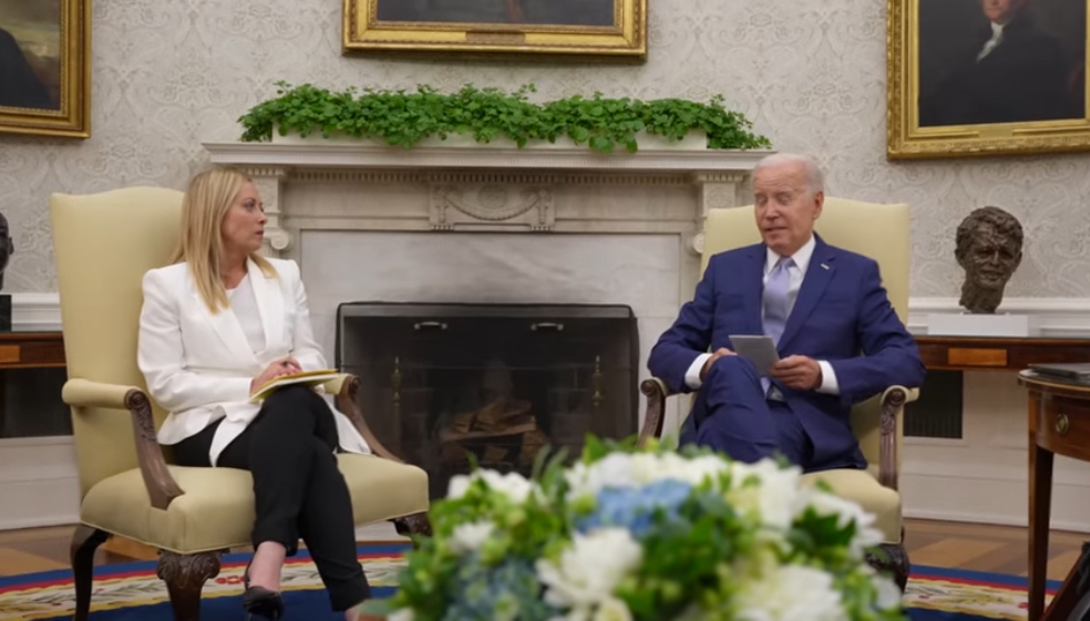 Image: Governo.it, vista ufficiale, PM G. Meloni, WH, Washington D.C., 27.7.2023