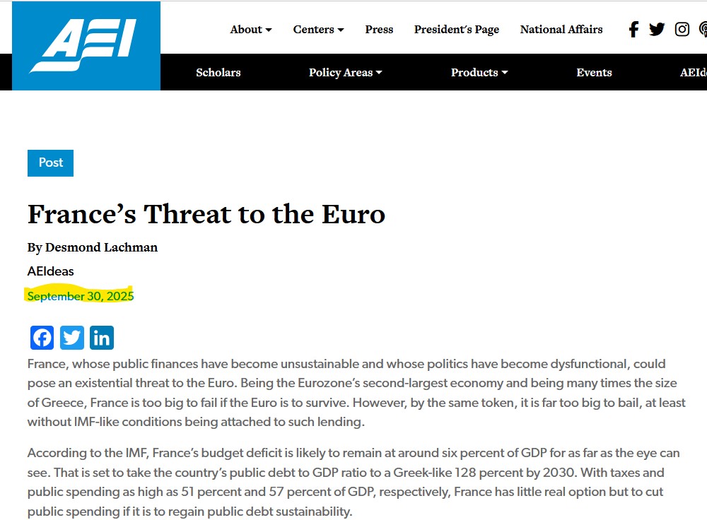 Sopra tutto, il fallimento di Parigi, che rischia di tirare dentro l’euro, distruggendolo. Solo questione di tempo secondo noi.